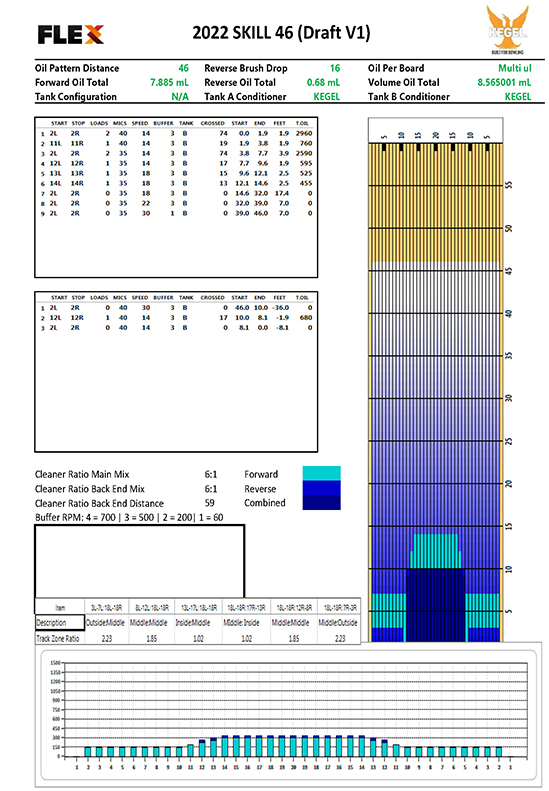 SKILL 46 on all odd-numbered lanes. 46 feet in length with 8 - 8.5 mL of oil.